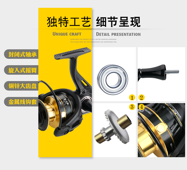 奕宝炫彩纺车轮金属线杯金属摇臂1000-6000系列轮海钓轮渔轮